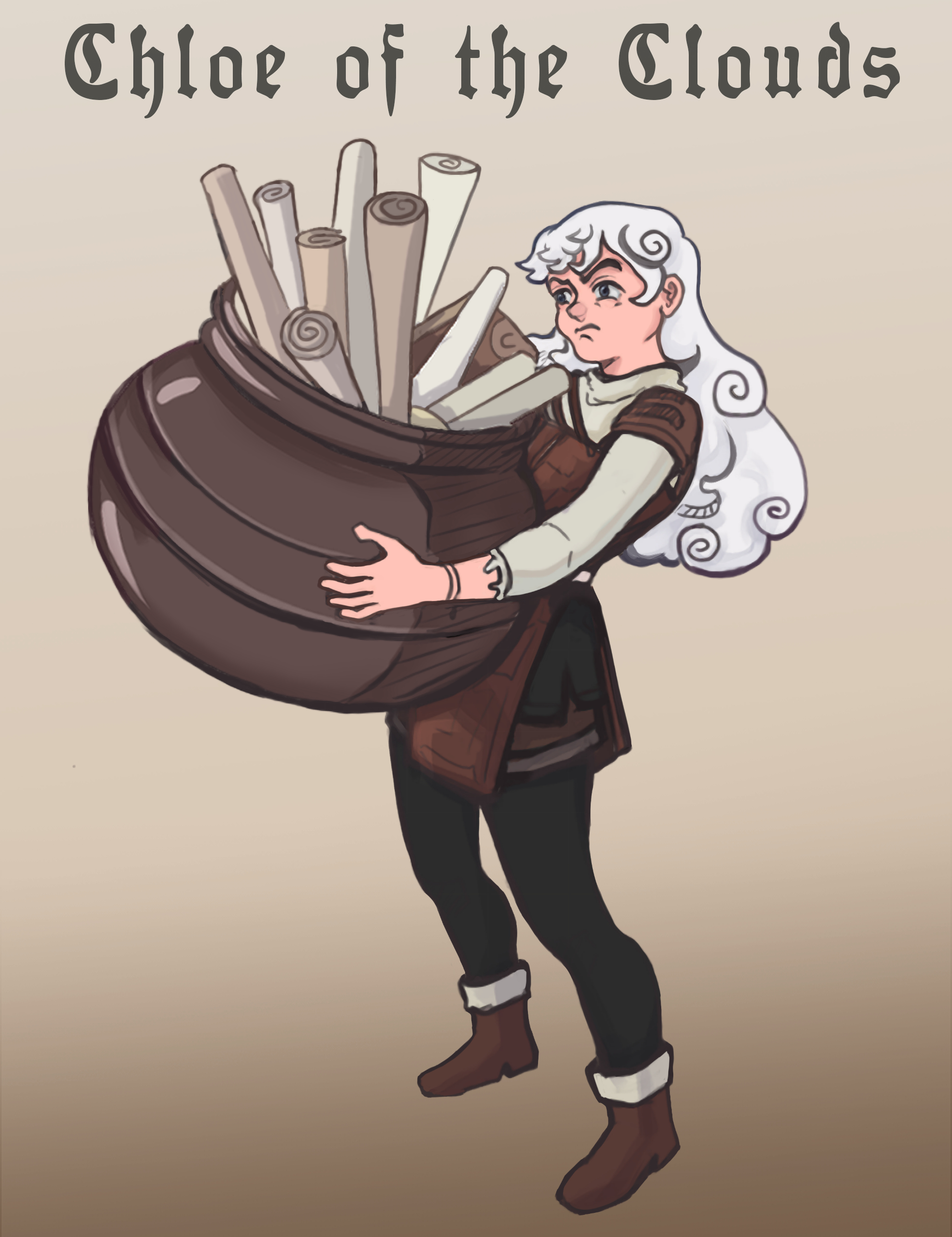 Chloe has just started school at the Geno Academy of the Arcane. She’s young and impulsive, nicknamed “Child of the Cloud” and sometimes teased as baby cloud by the villagers in her town, she often finds herself in more trouble than what would be considered normal for a 14-year-old teen to get into.